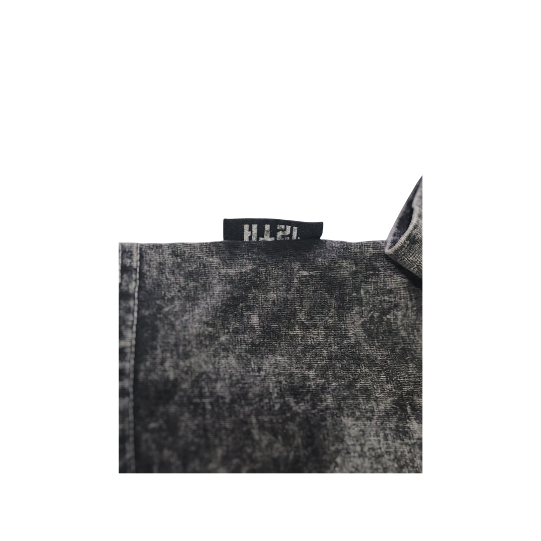 Camiseta oversize para mujer en tono negro con acabado acid wash. Inspirada en el carbón mineral, esta prenda captura la esencia de lo natural transformado en estilo urbano.